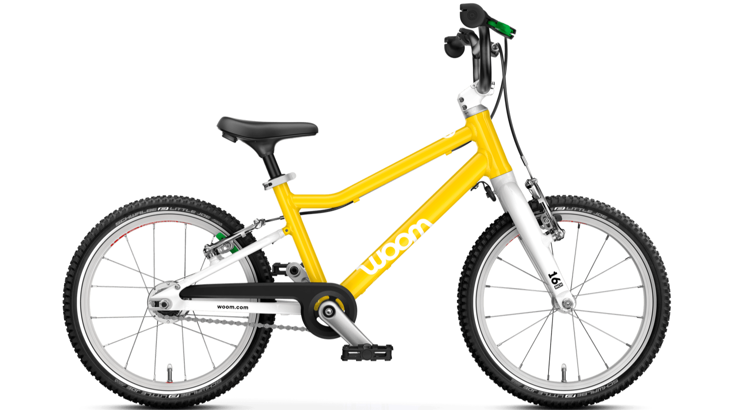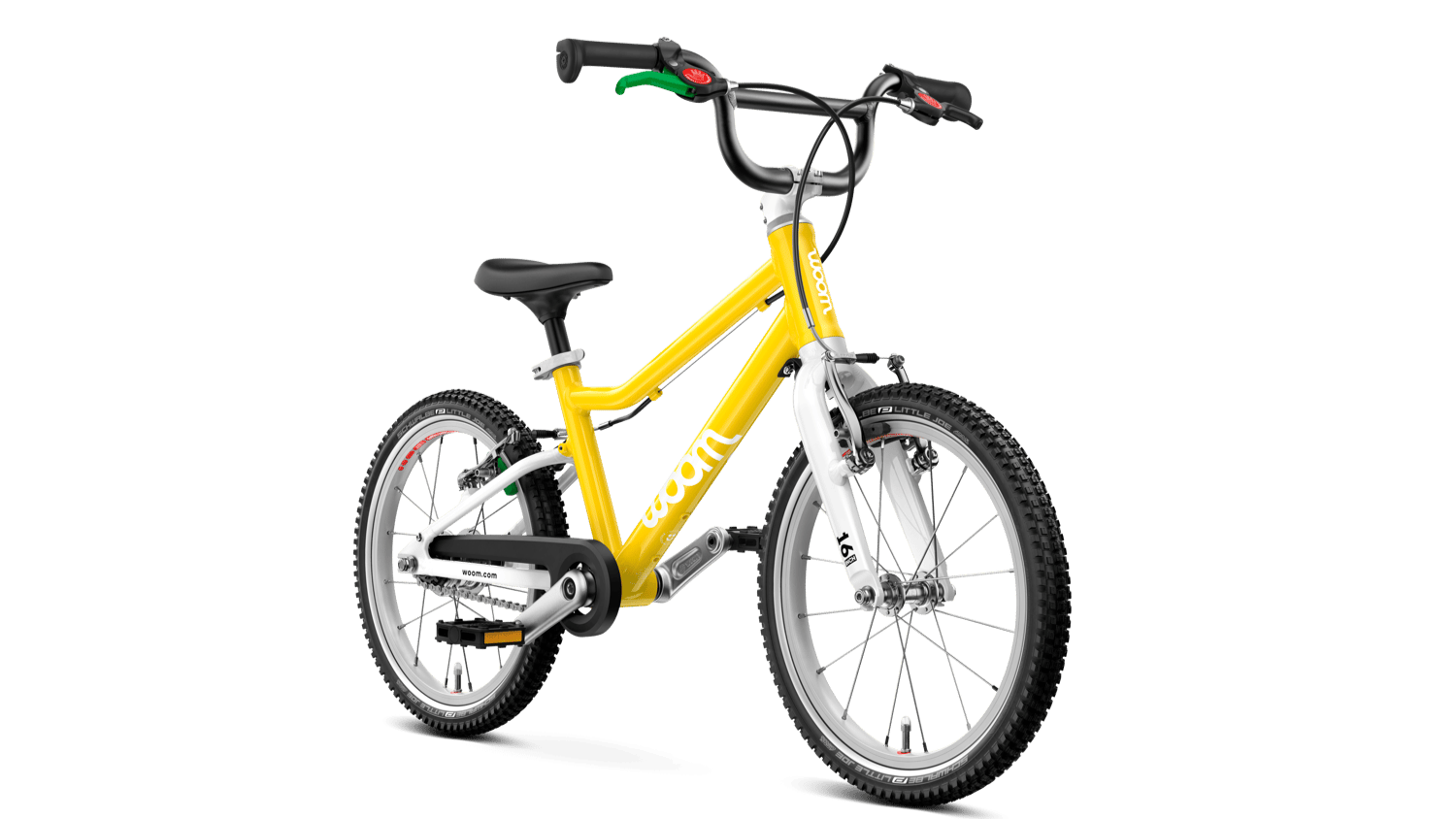 Das woom GO 3 AUTOMAGIC (16 Zoll) Kinderfahrrad mit automatischer Schaltung in knalligem gelb (vibrant yellow)